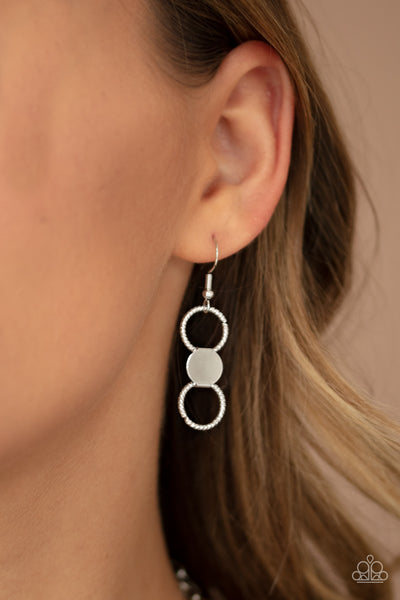 An interlocking net of textured silver rings and reflective silver discs link into a dramatically netted fringe below the collar. Features an adjustable clasp closure.